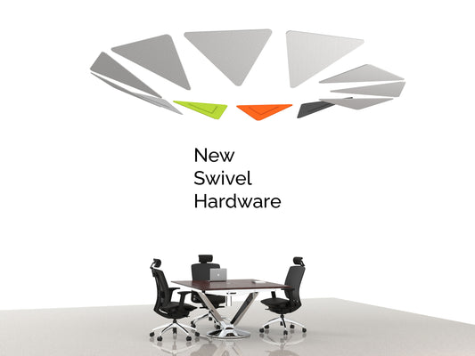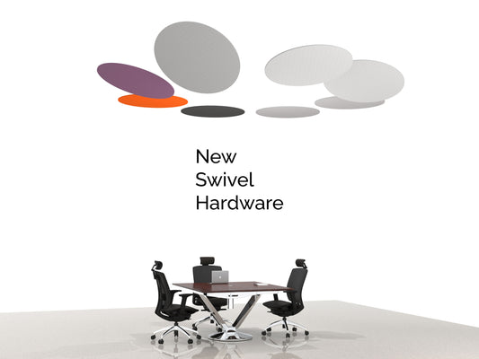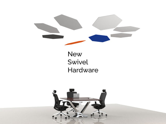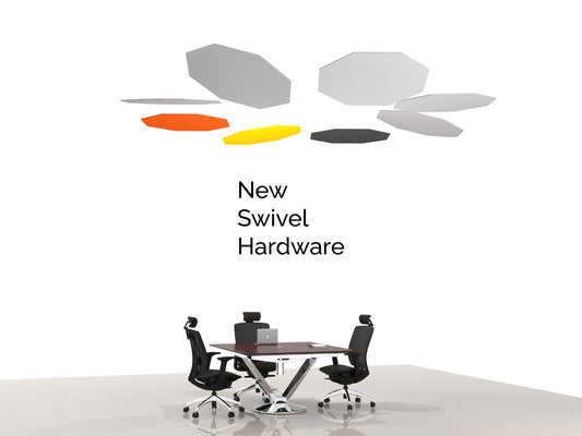 Our geometric clouds suspend from the ceiling with stainless steel aircraft cables. The clouds are made of acoustic felt to reduce sound echo and reverb.