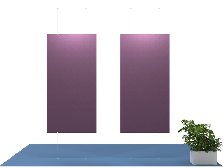A solid sheet of acoustic felt hangs from the ceiling and can be fastened to the floor as an option. The divider provides privacy and dampens sound echo.