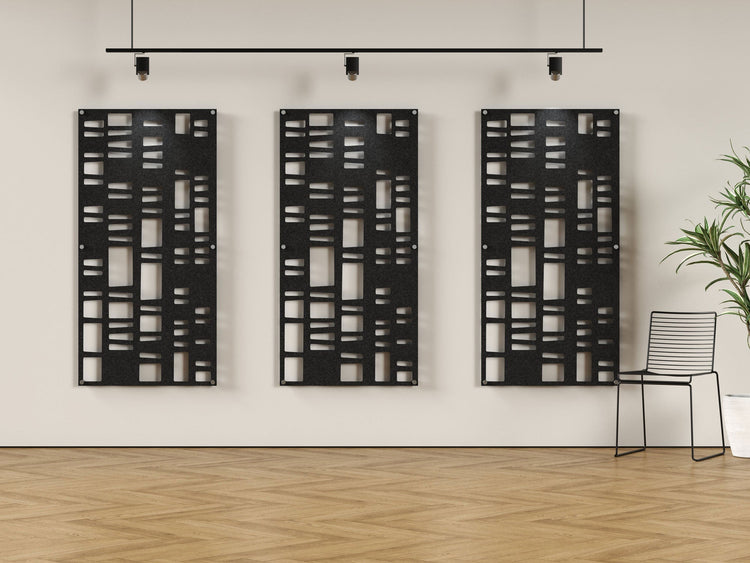 Our Abandoned Fence pattern is cut into this 4x8 acoustic wall panel. The panel is made of acoustical felt to dampen echo and reduce reverb.