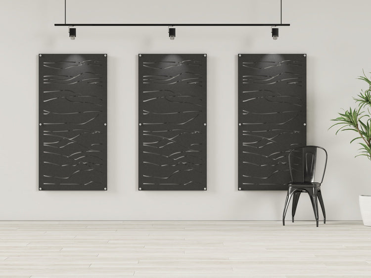 Our Fractured Landscape pattern is cut into this 4x8 acoustic wall panel. The panel is made of acoustical felt to dampen echo and reduce reverb.