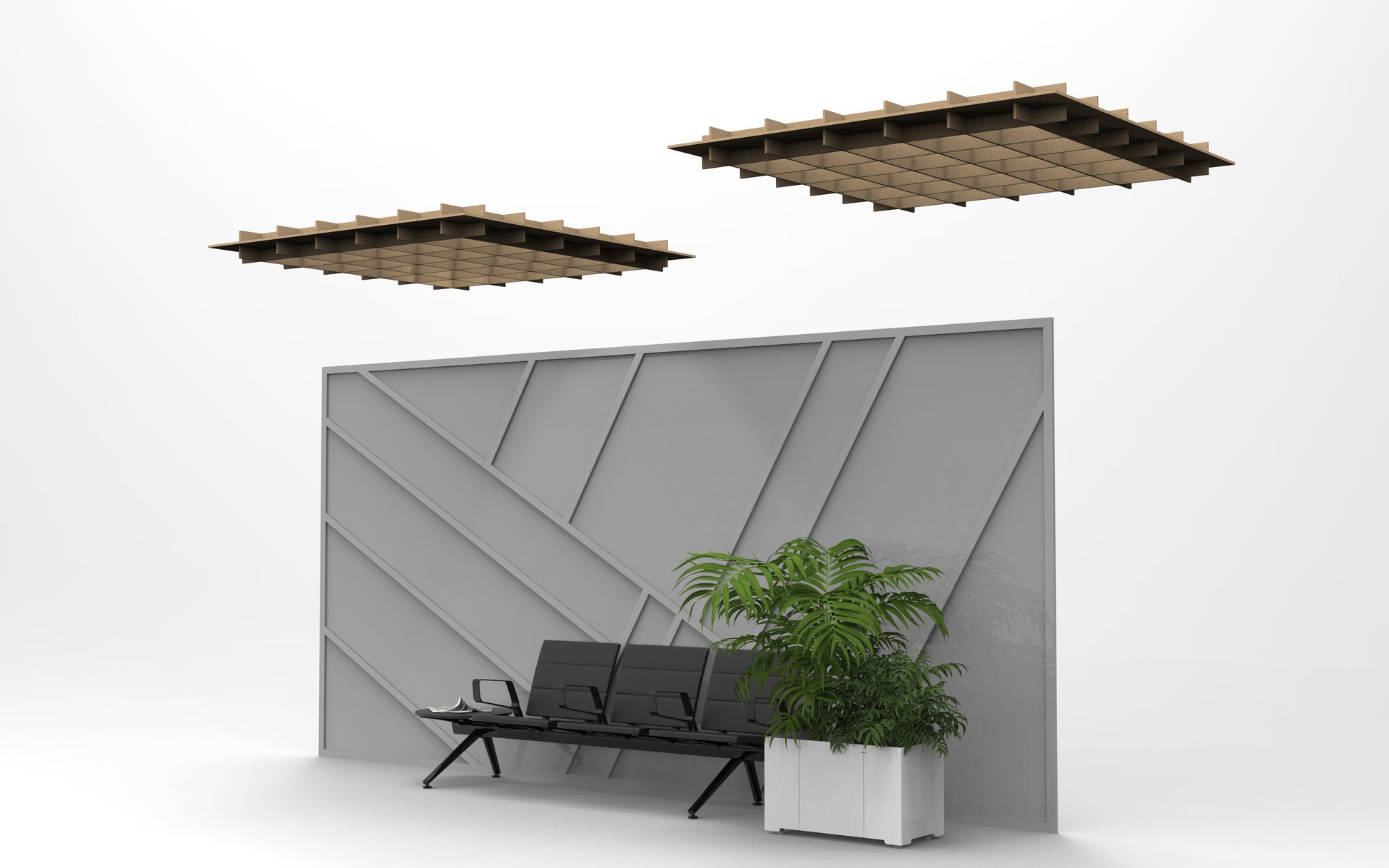 This ceiling grid is 6" x 71" x 71" and contains 14 rectangular felt panels. The acoustic felt panels help with absorbing sound echo and reverb.