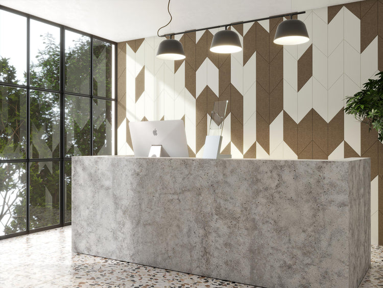 Our Parallelogram wall tile is made of acoustic felt to reduce echo and reverb. Install easily with any construction adhesive.