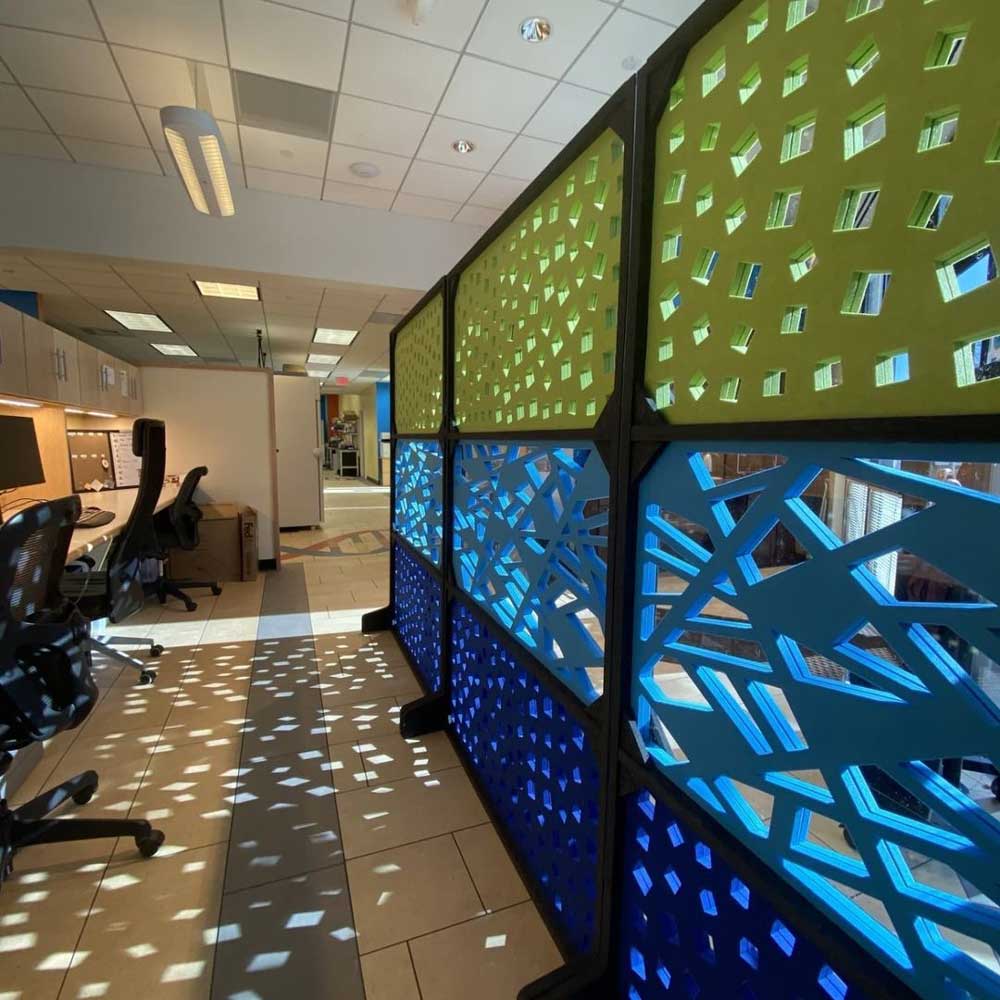 Click Wall is made of 3 highly customizable acoustic felt panels. The panels are secured in place with a felt support frame.