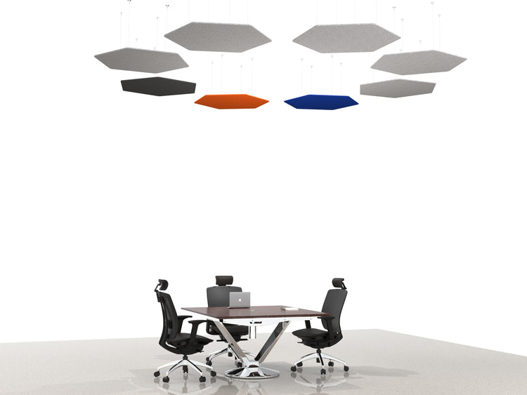 This Hexagon Cloud is made from two layers of acoustic felt. Install onto ceilings to reduce echo and dampen reverb. Price is per cloud.