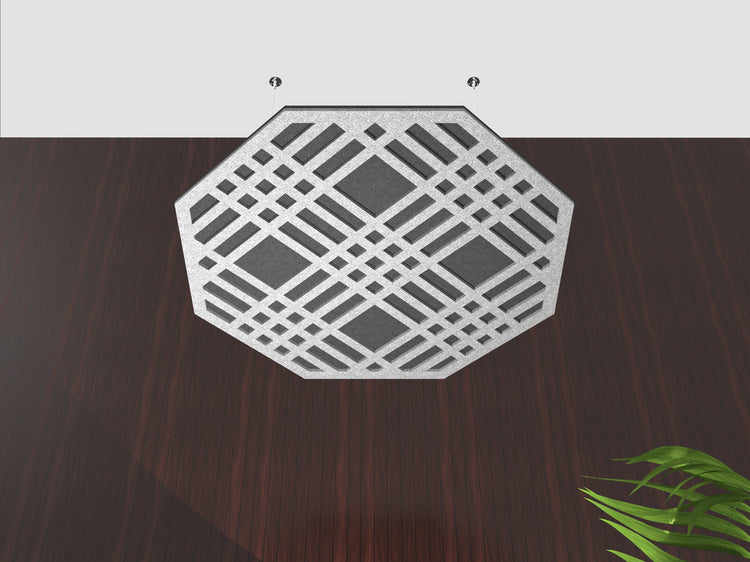 The Solar 4' medallion cloud is made of two layers of acoustic felt. It reduces excess echo and reverb from uncovered ceilings.