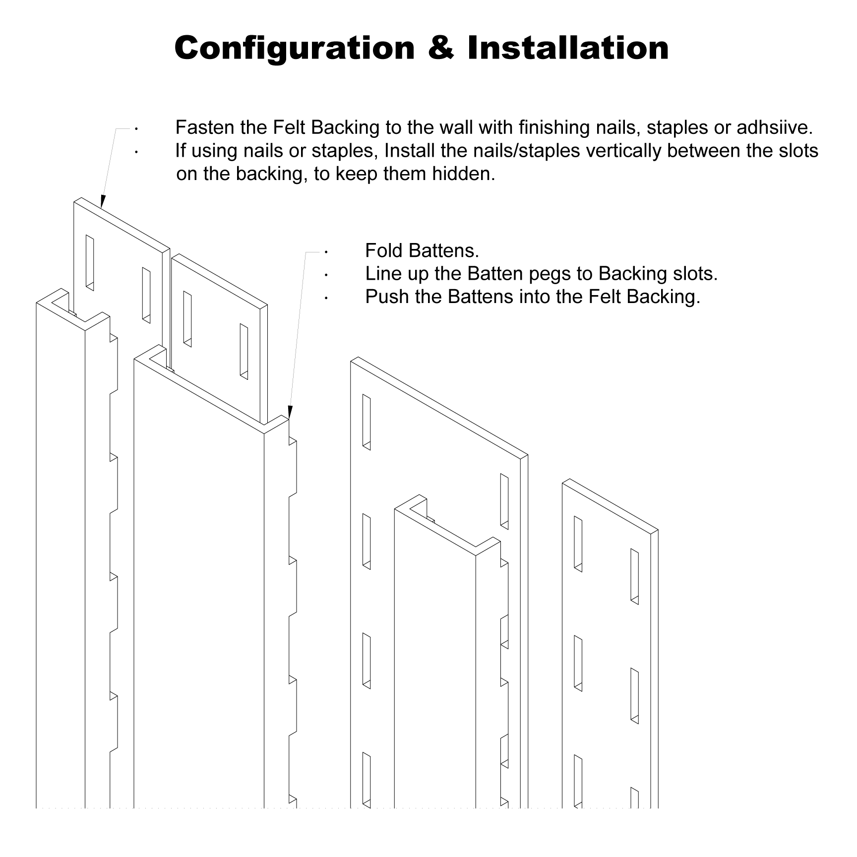 - Standard sizes for Batten/Backing: 3" / 5" / 8" wide and 107" tall.